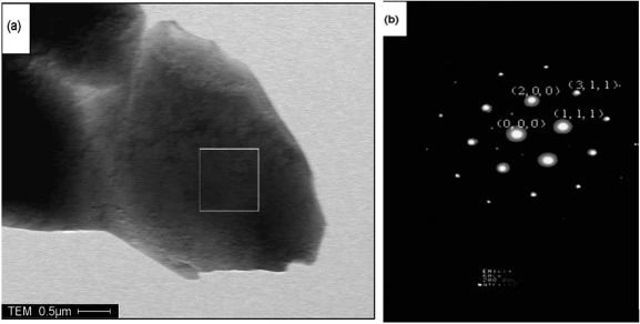 ▲图7 TEM:焊缝中的FeCrNiC奥氏体固溶体枝晶基体:(a)亮场图 (b)在(0 1 -1)晶带轴上的选区电子衍射(SAED,selected area electron diffraction)图。