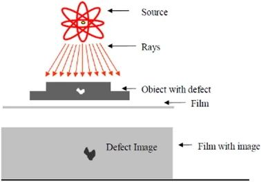 这种焊接测试方法利用了X光管的X光,其穿透通过焊缝到达照相胶片上的辐射,导致物体内部结构的图像呈现在胶片上(如图14所示)。物体吸收的能量取决于其厚度和密度。未被物体吸收的能量会导致射线照相胶片曝光。冲洗胶卷时,这些区域会很暗。暴露在较少能量下的薄膜区域保持较亮。因此,这种射线检测有助于表明焊接接头中存在的各种缺陷,如未焊满、未完全熔透或未熔透、未完全熔合、内部或根部咬边、偏移或不匹配、气孔砂眼以及缩孔。