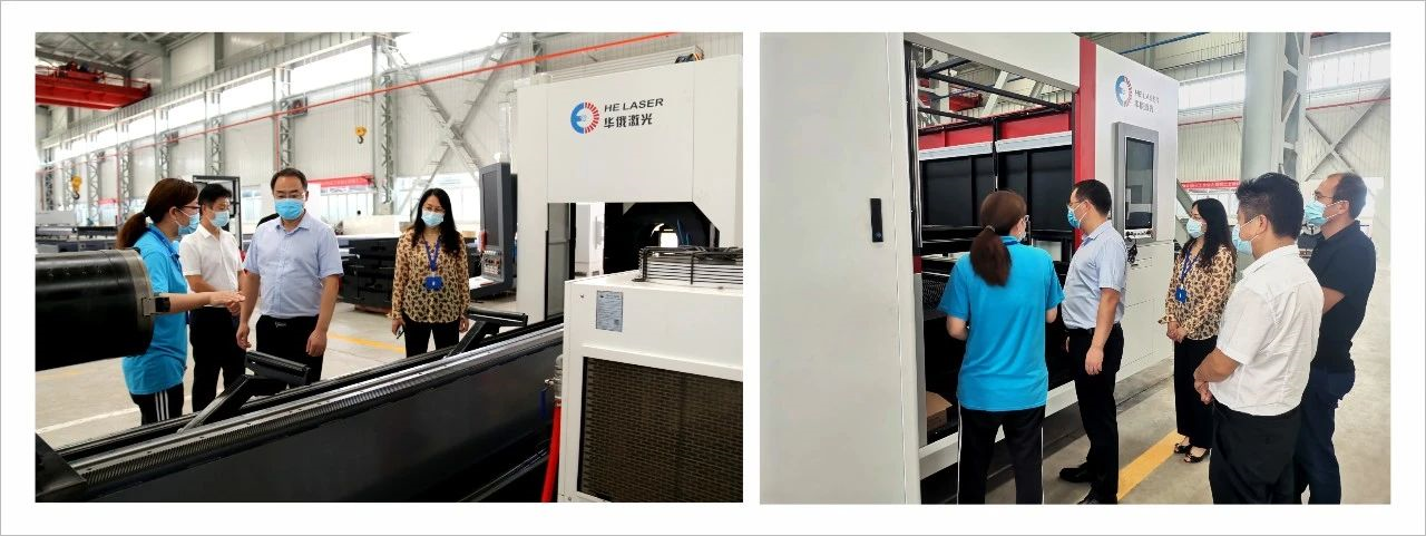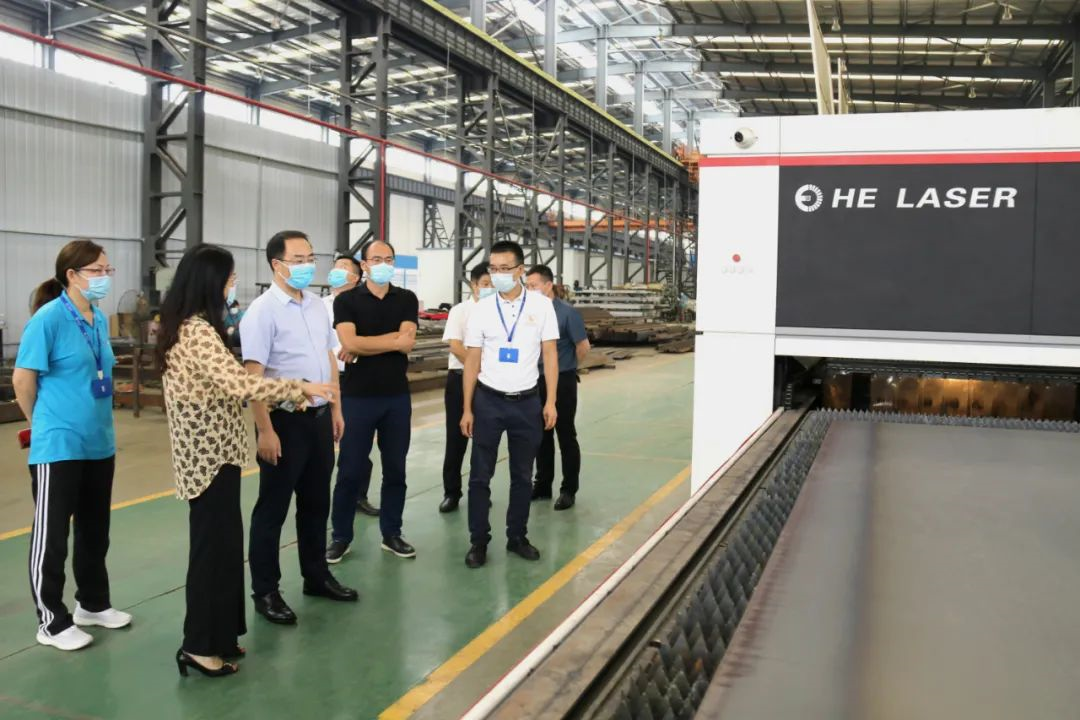 2021年9月7日,京山市市委书记张勇,市委常委、常务副市长郭志祥,市委常委、市委办公室主任姚明海,市招商服务中心主任王汉丰,永兴街道党工委书记邹成刚等市领导一行莅临华俄激光光谷工厂考察调研。董事长付俊等公司高层热情接待,并陪同参观了激光设备生产的全过程。