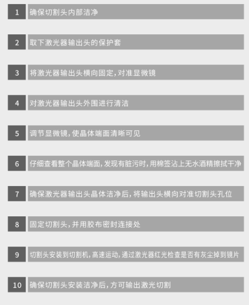 2、万瓦切割头内部镜片一旦有脏污或损伤,推荐采用替换方式,不建议取出清洁,避免造成二次更严重污染;
