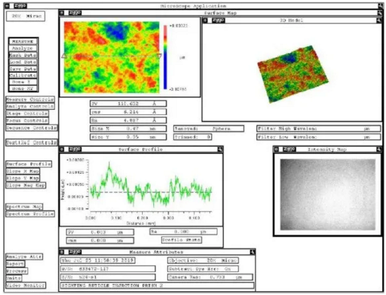在 Ophir Optics,对于平面和球形抛光表面,光纤激光器的标准粗糙度小于1 nm,对于非球面抛光表面,粗糙度小于 5 nm。在生产过程中,须始终控制粗糙度。图1 表示平面抛光表面的测量。
