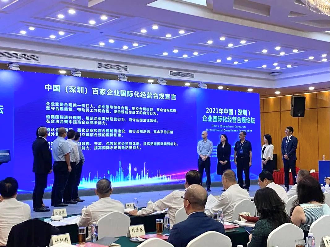 助力企业合规管理体系建设,全力打造合规示范区。9月17日,由深圳市贸促委、中国贸促会商事法律服务中心共同主办,以“合规经营,行稳致远”为主题的2021年中国(深圳)企业国际化经营合规论坛在深举办。论坛邀请著名合规专家、中外知名企业首席合规官等合规领域的嘉宾齐聚一堂,围绕“合规体系建设、合规人才培养、全球化与国际规则、涉外知识产权合规”等热点话题展开探讨。