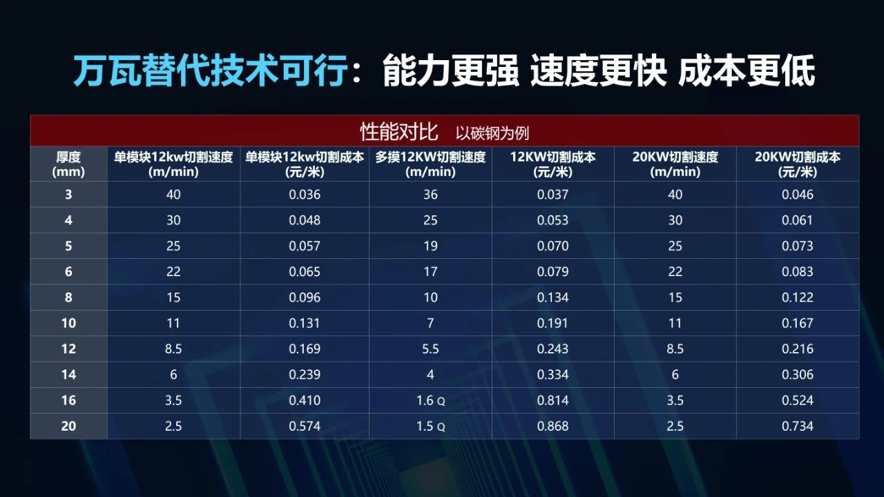 3、速度更快,收益更高:比多模12kw切割速度提高10%-91%;