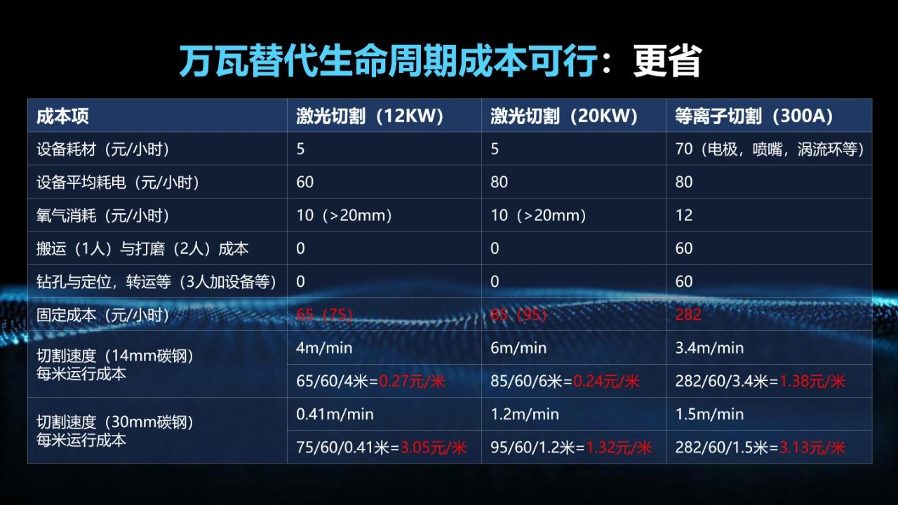此次发布会也正式迈开了创鑫万瓦替代等离子新增量市场的步伐,曾总在会上表示目前激光替代等离子要跨越三座大山:一是万瓦替代技术可行性,二是生命周期成本可行性,最后是一次采购成本可行性。