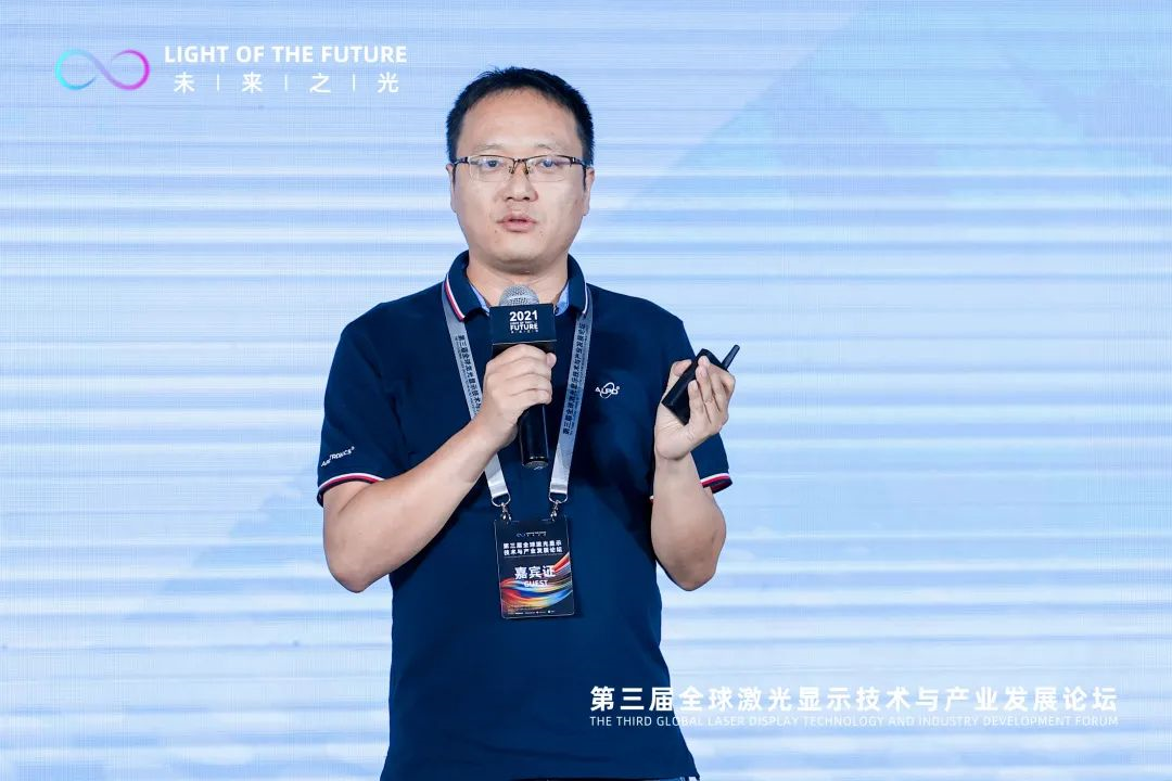 论坛现场,光峰科技产品中心总监张贤鹏博士发表题为《激光显示,无处不可,无时不可》的主旨演讲,从“激光显示正当时”、“依托技术持续创新”、“创造价值以人为本”、“行业合作共赢未来”四个方面做了分享。
