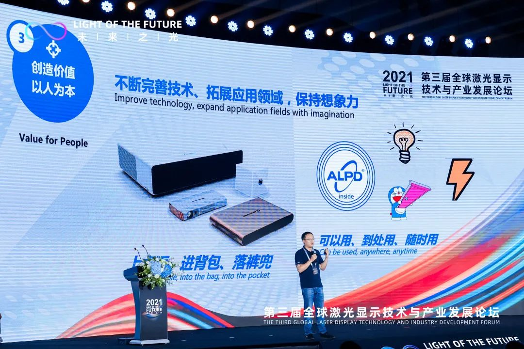 “对于激光显示产品来说,一定是从大到小,从固定到移动,从TO B业务延伸至TO C最终应用。”张贤鹏说到,“在过程中我们需要不断完善技术,拓展应用领域,同时非常重要的一点是保持想象力。形象一点解释,现在“从背包里取出来”到未来“从兜里掏出来”,为产品提供很多想象。“掏”出更有意思的产品和更有意思的技术,这需要加大研发投入,进一步完善产品。”