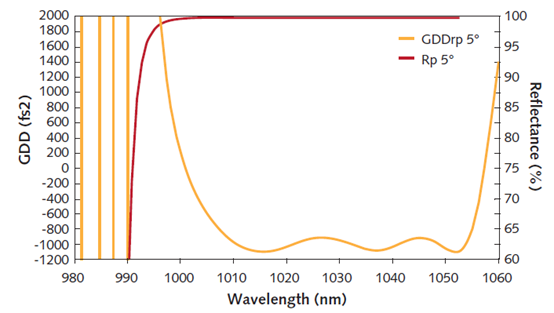 图1:当与高功率超快系统一起使用时,设计用于最大限度减少热透镜效应的高色散反射镜膜层,有利于腔内和外部光学元件。