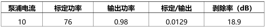 此种方法剥除效率为6.8dB/cm,如果加长距离可以达到20dB以上的剥除效率,但存在光纤容易断裂,发热温度过高的问题,不适合实际应用。因此,没有再做加长处理。