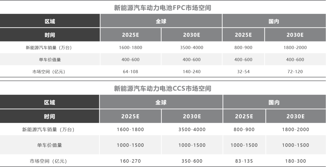 新能源汽车动力电池一般都多个电池模组组成,单个电池模组对应 1 个 CCS,1 个 CCS 一般配置 1-2 个 FPC,CCS 集合塑胶结构件、铜铝排等结构件。在动力电池运用领域,FPC主要用于pack环节的传统线束替换,协助电池包的信息采集。