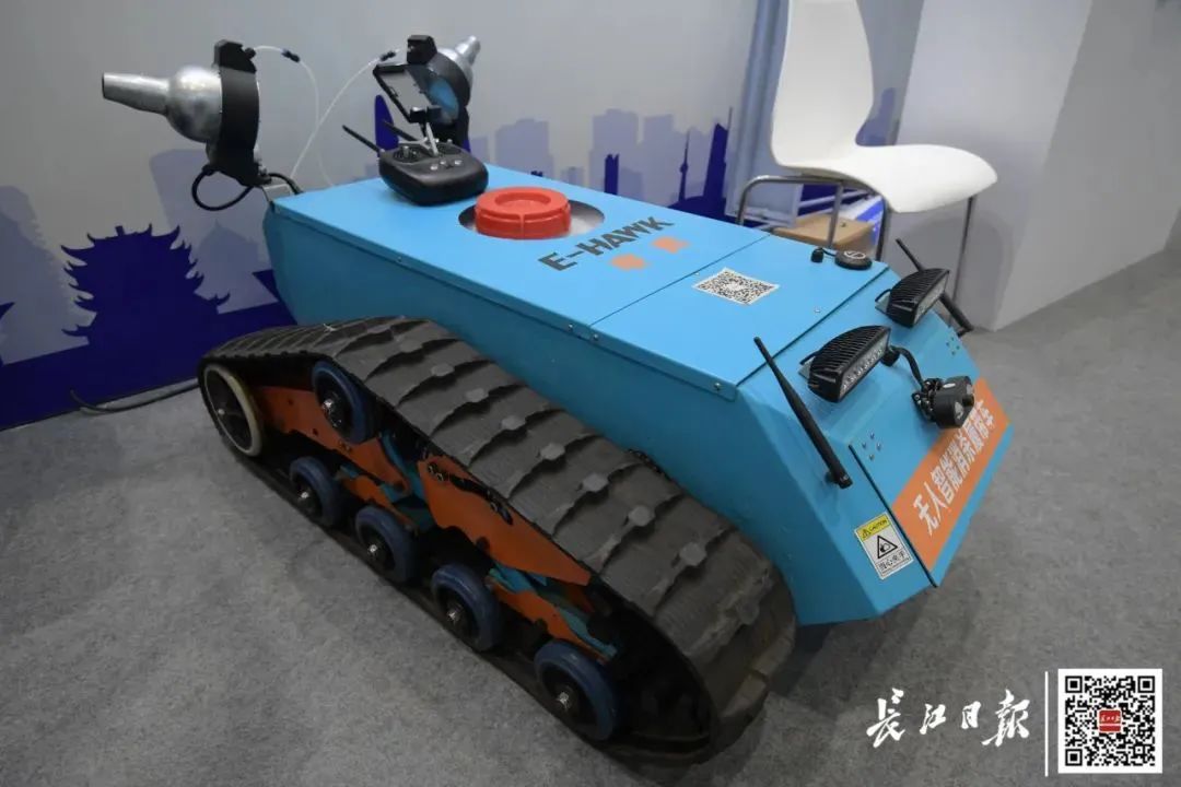 武汉电鹰科技有限公司开发的无人智能消杀履带车。记者詹松 摄