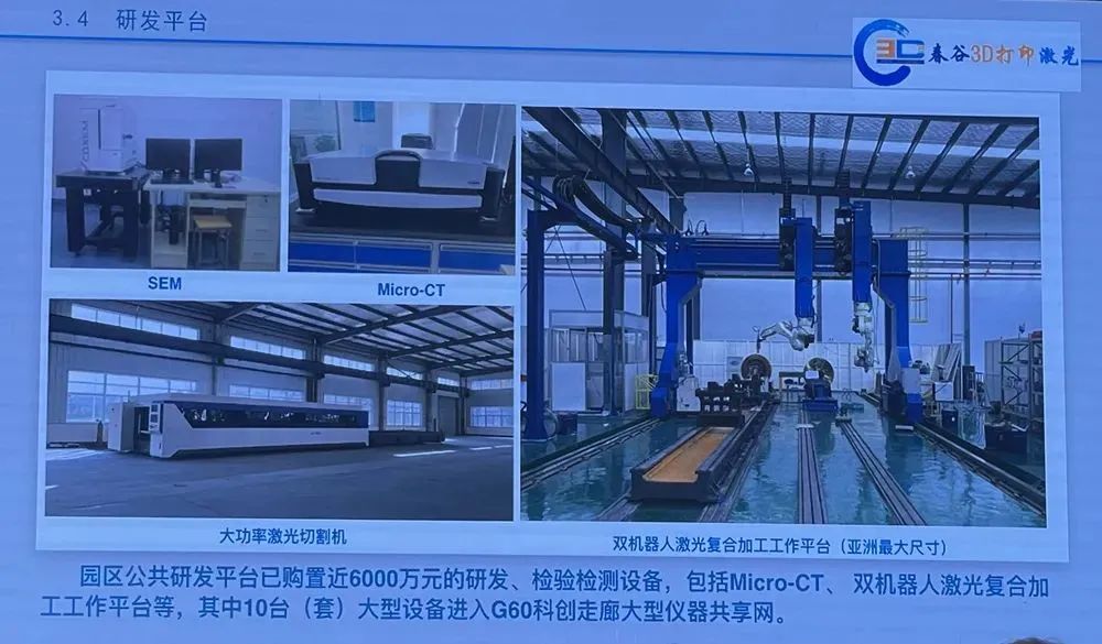 我们建有安徽增材制造协同研发中心,集聚了中科大、哈工大、中科院、上海光激所、西交大等大学、大院、大所的资源,重点开展3D打印的工艺装备、材料、应用等技术研发,种下龙头树,引来金凤凰,截至去年年底一共有14个团队获评了市级以上的高层次人才团队,其中省级一共获得的扶持资金达到了7300万元,这其中有西交大李长久团队,哈工大郭景杰团队,中科大梁海弋团队等优秀的专家团队,一大批的优秀企业、优质项目,目前我们园区已经集聚了企业60多家,初步形成了网站、设备、材料、软件、服务等较为完整的产业链条。