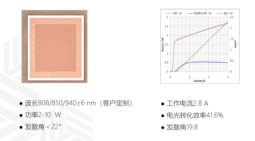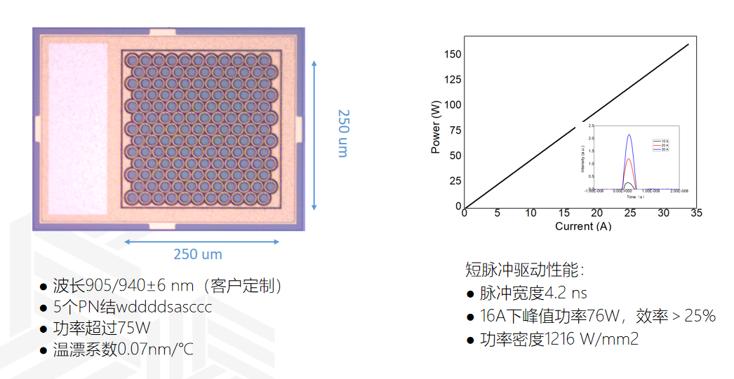 在激光雷达发射端芯片方面,我们专注于高功率、高能量密度VCSEL的芯片开发。