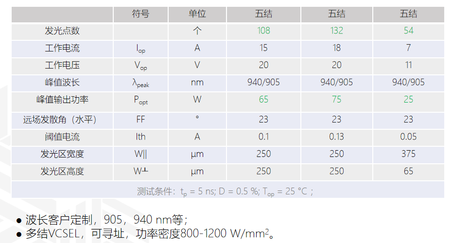 结构光和ToF方案都需要在宽泛的工作条件下(包括峰值光功率和脉冲参数等)利用VCSEL照射目标场景。