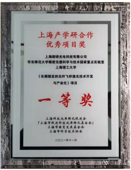 近日,朗研光电的“长期稳定的光纤飞秒激光技术开发与产业化”项目荣获“上海产学研合作优秀项目奖”一等奖。