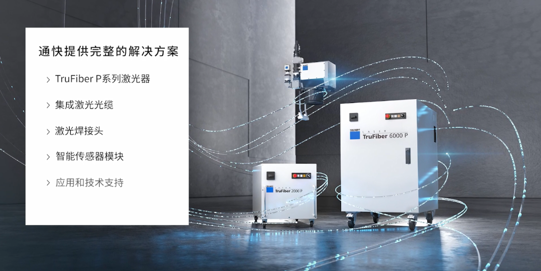TruFiber P 还提供整套先进的加工解决方案。通快成熟的产品体系覆盖激光器、传输光纤、加工头以及各种传感器,完整的系统为您带来最领先又最稳定的加工体验。