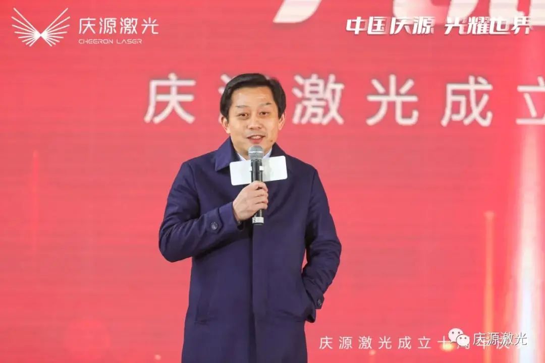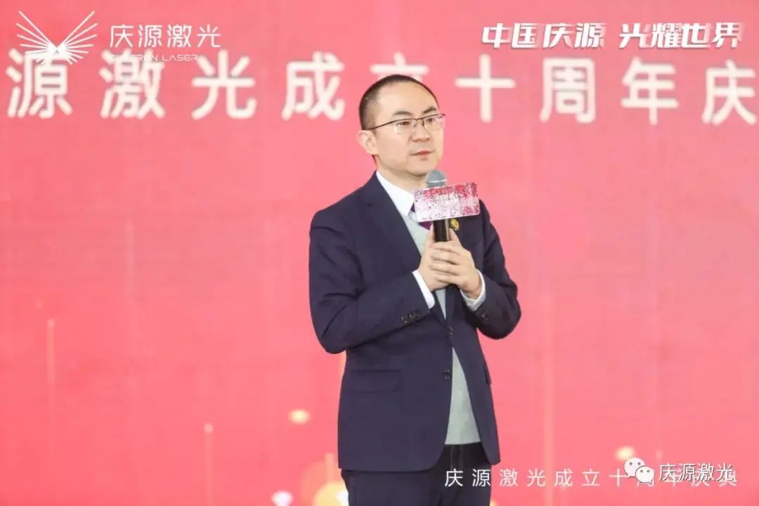苏州长光华芯光电技术股份有限公司董事长、总经理闵大勇先生上台作开幕致辞。他表示:“祝贺庆源激光成立十周年。十年前,曾军河先生创办了庆源激光。十年后的这一天,庆源激光已成为激光工具化的开拓者、推动者,为推动激光的发展添上了浓墨重彩的一笔。十年磨一剑,剑指激光路,祝愿下一个十年庆源激光能成为激光的典范。”