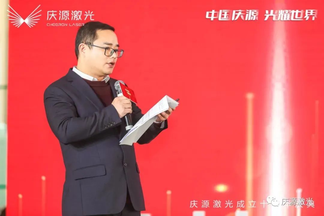 “回首十年,历经坎坷。庆源激光从30万的注册资金做到6个亿的销售规模,从一张A4纸的订单变成30000平方米的企业厂房,从3个人的创业团队扩展到330人的规模增长,这一路的成长值得每一个庆源人骄傲,我骄傲我是庆源人,”庆源激光销售副总监鹿先龙先生在演讲中自豪地说道,“庆源经历了风风雨雨的十年,是一部从无到有的开拓史,是一曲高昂嘹亮的赞美歌曲。如今庆源激光与时俱进,紧跟历史的洪流,从襁褓婴儿成长为了一名英俊少年,正意气风发的大踏步走向未来!”