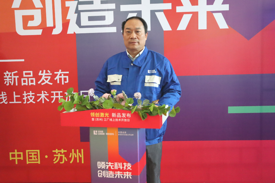 领创激光的技术核心人员参与了中国第一台激光切割机的研发制造,至今已有三十余年的从业经历,他们把一生最美好的时光都献给了激光行业,领创激光常务副总宋维建先生就是其中的代表性人物,他代表领创激光500多名员工致开幕词。