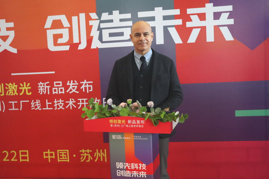 普玛宝钣金设备(苏州)有限公司总经理罗伯特-扎诺蒂先生代表领创激光的意大利合作伙伴致辞。他说与领创激光的合作始于2018年,从那一天起,我们就开始并肩作战,试图把两家公司的优势结合起来,有一个共同的目标:让客户满意。双方合作的成果之一的推出LEADLB3015新的三维五轴激光切割机,覆盖普玛宝所不能延伸的市场,满足了工作车间和汽车主机厂对定制机器的需求。