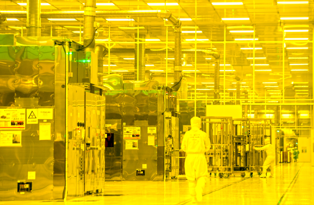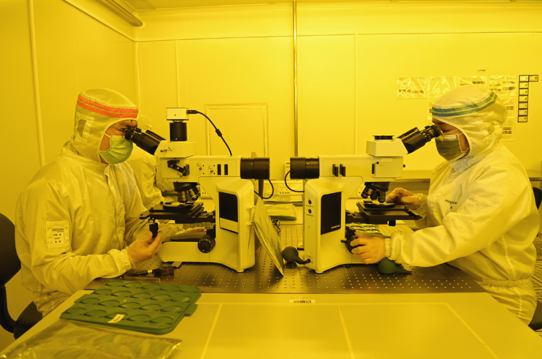 敏芯半导体净化厂房内的黄光区,工程师正在进行操作