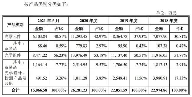 从产品端来看,波长光电收入占比最大的两个业务分别为光学元件和光学组件。