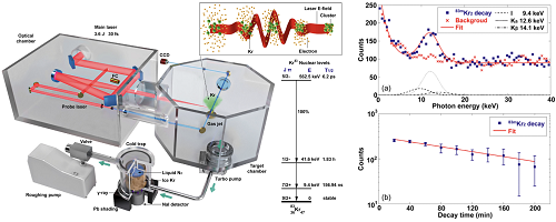 在该项研究中,团队利用一台百太瓦级桌面型激光器为驱动源,观测到了Kr83核素的同质异能态(其能级为42keV,寿命为1.83小时)。其峰值产生效率达2.34E15 p/s,超出传统加速器所能达到的峰值产生率数个量级。