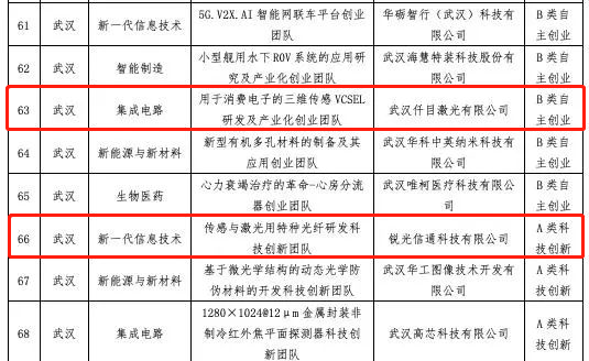 仟目激光凭借“用于消费电子的三维传感器VCSEL研发及产业化创业团队”入围“湖北省双创战略团队”。