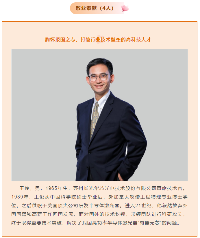长光华芯CTO王俊博士入选敬业奉献“江苏好人”