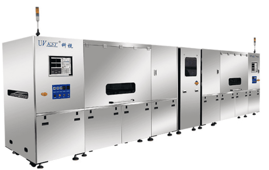 2015年开始,科视光学研发团队将光源技术应用到PCB领域,并研制出国内领先的近紫外LED曝光机,走上高端曝光装备的国产替代道路。2018年,科视光学研制出国内首台双面双框防焊半自动LED曝光机,获得国家发明专利,解决了防焊制程只能单面曝光的技术难题。2019年,科视光学研制出高产能的近紫外全自动防焊曝光机,产能达到4.5PNL/分钟,成为国内能够解决MiniLED防焊曝光技术难题的核心装备供应商。