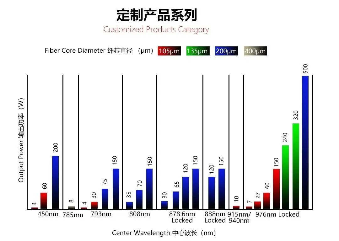 半导体激光泵浦源属于激光产业链中的关键环节,其技术水平、性能和可靠性指标直接影响中下游激光器及激光应用设备的质量和性能。目前产品主要应用于下游光纤激光器的制造,终端应用包括材料加工、切割、打标、焊接、光通信以及生物医学等领域。