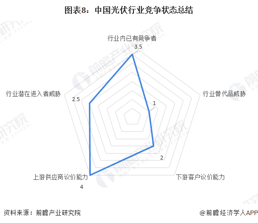 从现有企业竞争分析,中国光伏产业发展在全球占据领先优势,其他国家为确保能源安全,降低能源对外依赖程度,在加大力度抵制中国光伏产品并重点扶持本国企业,因为行业竞争者数量较多,行业整体竞争程度激烈。