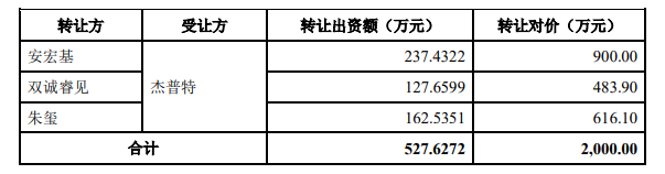 杰普特拟以对价 9,000,000元人民币受让安宏基持有的睿晟自动化 9.00000%的股权;拟以对价 4,839,020 元人民币受让双诚睿见持有的睿晟自动化 4.83902%的股权;拟以对价 6,160,980 元人民币受让朱玺持有的睿晟自动化 6.16098%的股权
