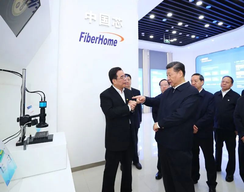 这一次,习近平总书记来到烽火科技集团考察,一边查看企业研制的芯片、光纤等高科技产品,一边了解产品用途、性能、国产化率、在国际同行业中的地位等情况。
