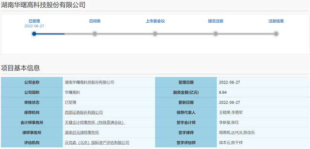 6月27日,湖南华曙高科技股份有限公司(下称“华曙高科”)闯关科创板IPO获上交所受理,本次拟募资6.64亿元。