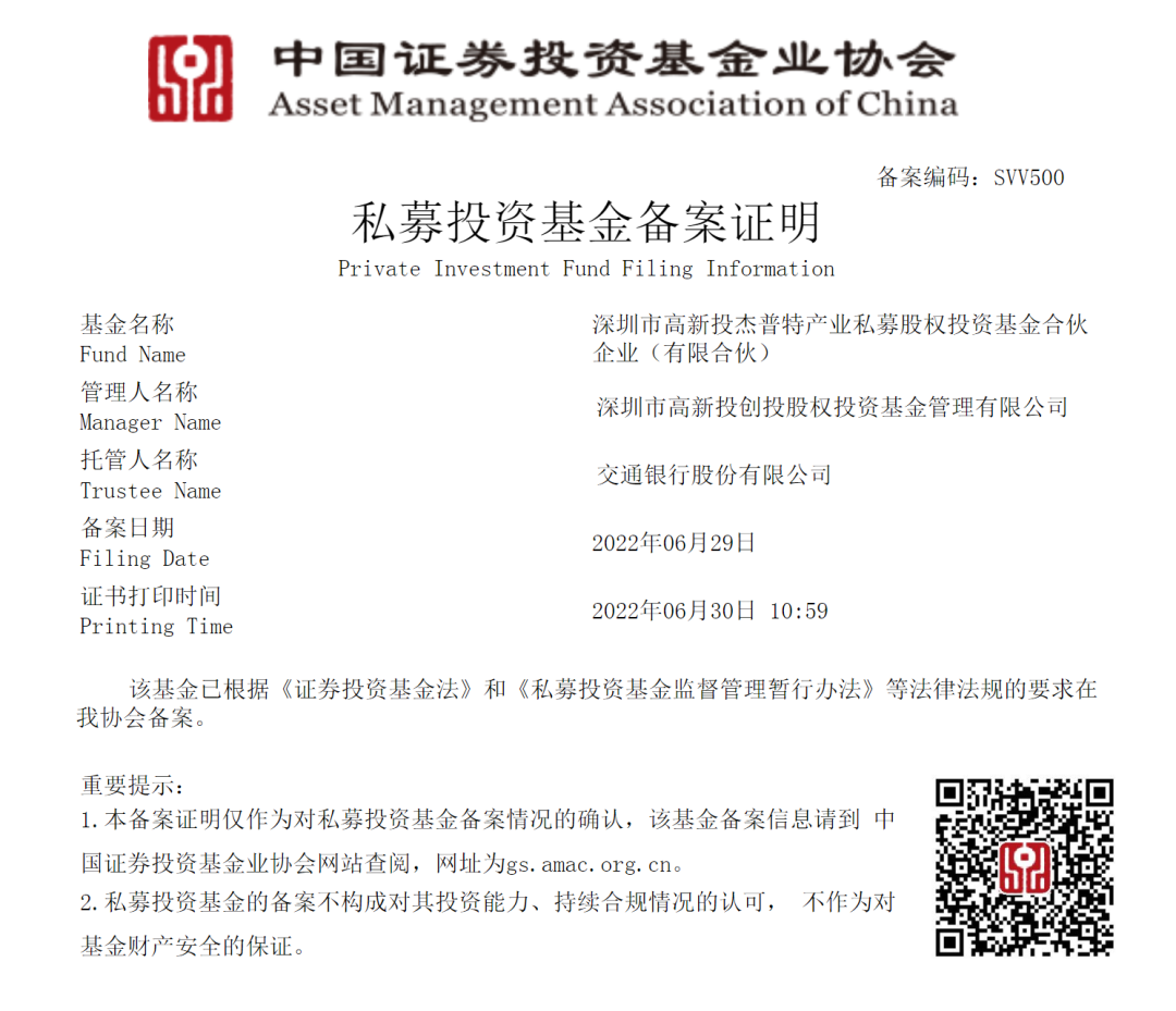 高新投杰普特基金将依托深圳高新投和基金合作方在金融和产业上的优势资源,深入挖掘产业上下游优质项目,充分发挥“投保联动”创新优势,为被投企业提供资金和产业双重支持,实现资本市场的强强联合,助力国家战略性新兴产业和未来产业加速发展。
