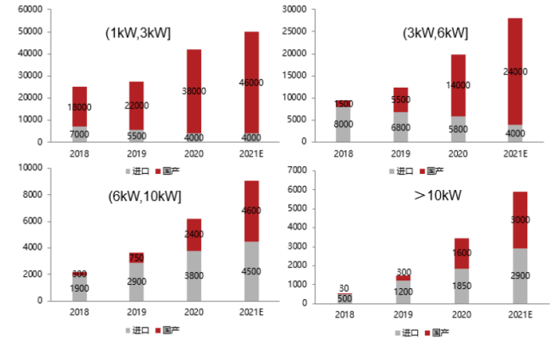 2018-2021E年我国光纤激光器出货情况(单位:台)