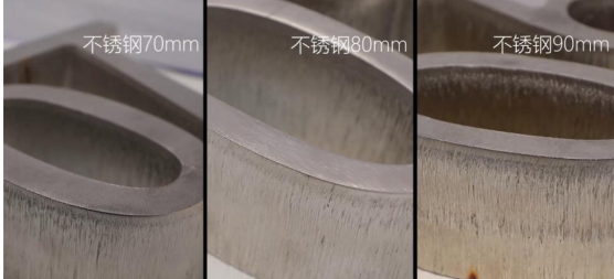 那么,我们来看一下锐科12kW、20kW、30kW切割不同厚度的碳钢的工艺效果的对比情况。