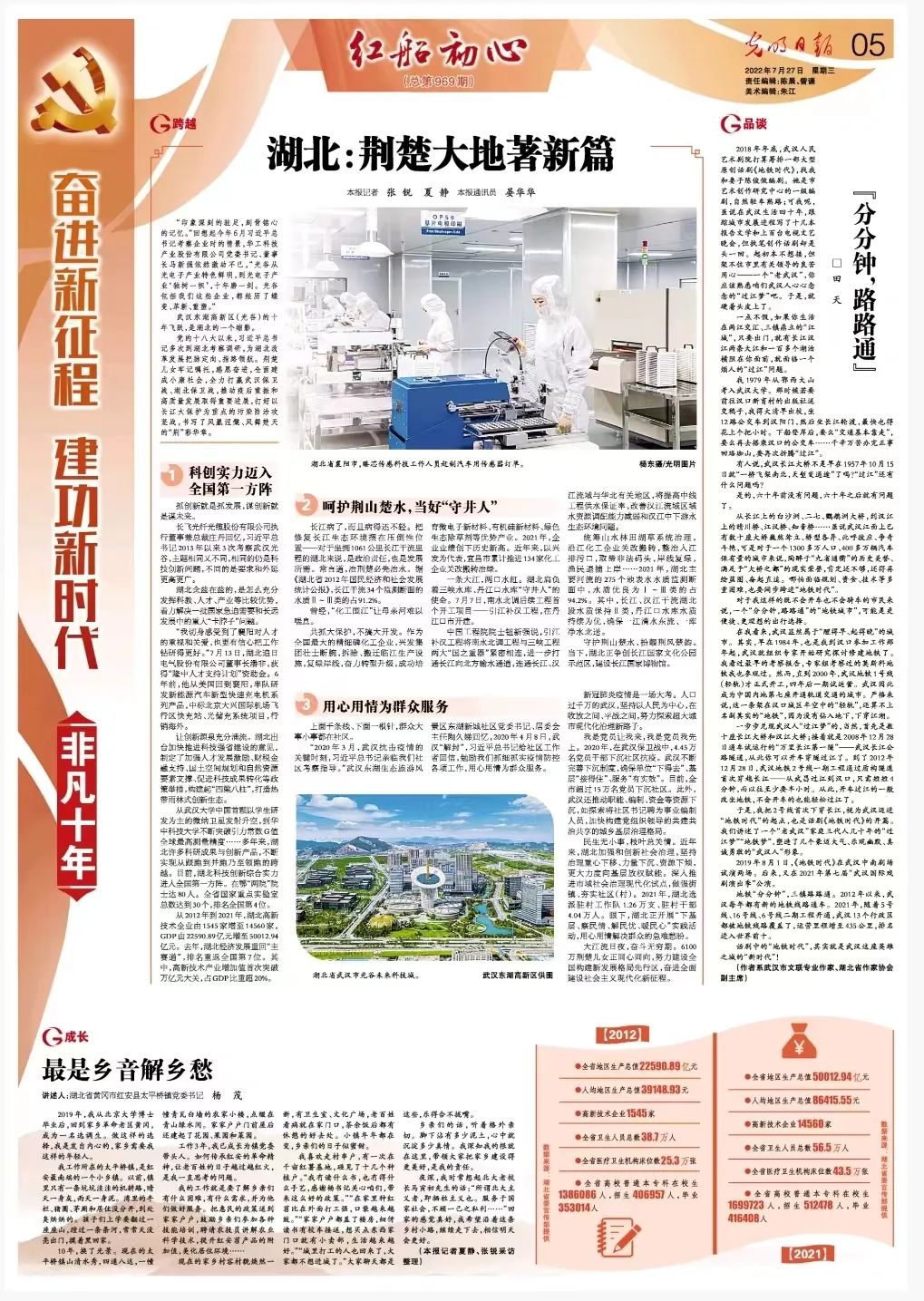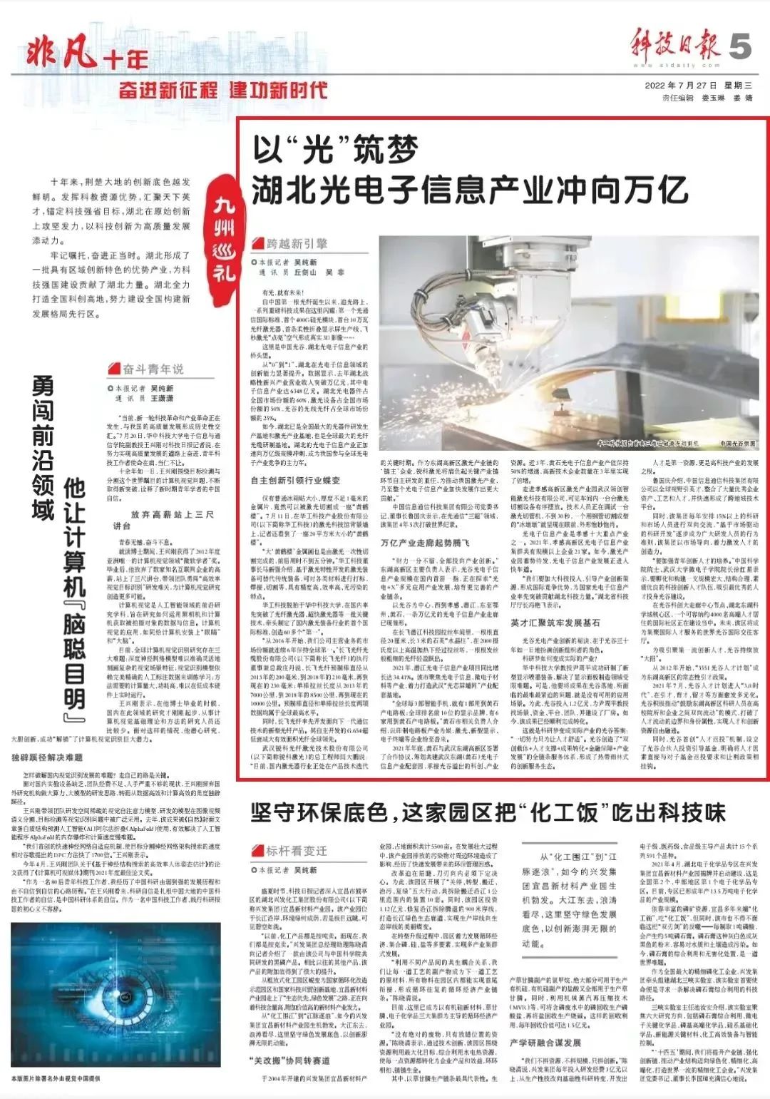 7月27日,光谷迎来又一“高光”时刻——人民日报、新华社、光明日报、经济日报、央视新闻联播、科技日报等中央媒体纷纷聚焦,在《奋进新征程 建功新时代 · 湖北篇》专题中,报道光谷企业华工激光、锐科激光、沃亿生物等在科技创新方面的最新进展和成绩。