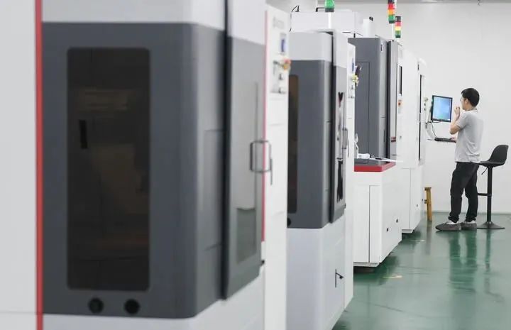 武汉华工激光工程有限责任公司员工在生产车间工作(2022年7月11日摄)。新华社记者 程敏 摄