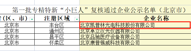 名单显示,北京卓镭激光技术有限公司入选第四批专精特新“小巨人”企业;北京凯普林光电科技股份有限公司上榜第一批专精特新“小巨人”复核通过企业名单。