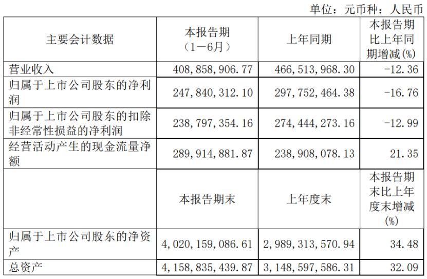 8月9日,上海柏楚电子发布2022年半年度报告。上半年实现营业收入4.09亿元,同比下降12.36%;实现归属于母公司股东的净利润2.48亿元,同比下降16.76%。