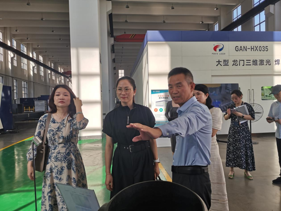 奔腾激光(浙江)股份有限公司吴让大总裁热情接待了领导一行。黄主任参观了公司切割、焊接样品展示区,大数据运维中心,公司展厅,研发车间和数字化智能工厂,并专题汇报了浙江省激光智能装备技术创新中心创建工作和协助政府招引激光产业上、中、下游企业的情况。