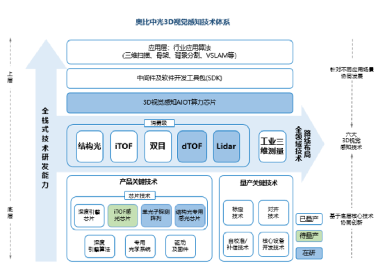 与此同时,奥比中光在自研芯片方面持续取得突破,自研iToF感光芯片Pleco和Pleco Mini已完成流片,dToF感光芯片已完成一款面阵SPAD芯片和一款单点SPAD芯片的流片,在数字芯片方面公司已完成四代深度引擎芯片的开发;目前在进行结构光专用感光芯片、AIoT算力芯片以及用于车载全固态面阵激光雷达的dToF感光芯片等多款芯片的研发和流片。