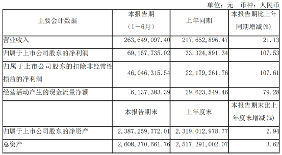 炬光科技8月25日晚间披露2022年半年报,报告期内,公司实现营业收入2.64亿元,较上年同期增长21.13%;实现归属于上市公司股东的净利润为6915.77万元,较上年同期增长107.53%;实现归属于上市公司股东的扣除非经常性损益的净利润4604.63万元,较上年同期增长107.61%。