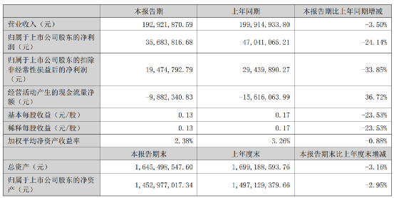 远方信息8月26日晚间发布半年度业绩报告称,2022年上半年营业收入约1.93亿元,同比减少3.5%;归属于上市公司股东的净利润约3568万元,同比减少24.14%;基本每股收益0.13元,同比减少23.53%。