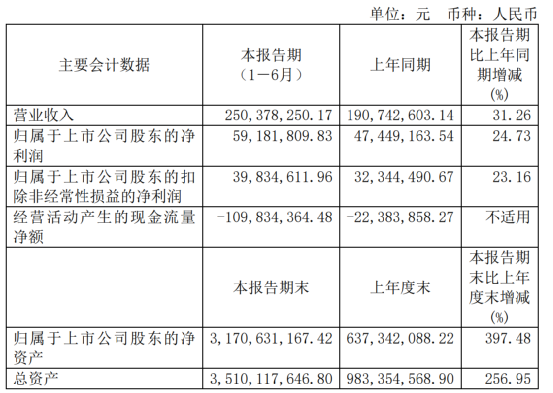 腾景科技8月11日公告,上半年公司实现营业收入1.68亿元,同比上涨24.99%;归母净利润2685.14万元,同比上涨18.53%;扣非归母净利润2196.2万元,同比上涨32.55%。