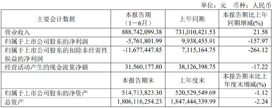 凤凰光学8月10日晚间发布半年度业绩报告称,2022年上半年营业收入约8.89亿元,同比增加21.58%;归属于上市公司股东的净利润亏损约576万元;基本每股收益亏损0.02元。