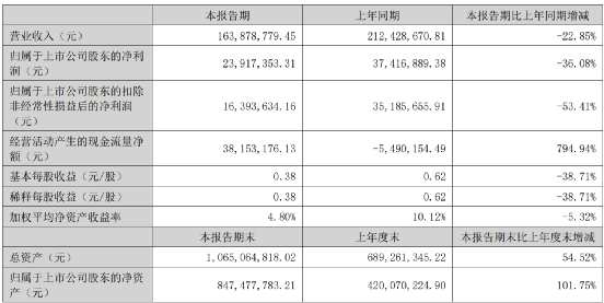 英唐智控8月28日晚间发布半年度业绩报告称,2022年上半年营业收入约27.07亿元,同比减少16.63%;归属于上市公司股东的净利润约3618万元,同比增加16.05%;基本每股收益0.03元,同比增加0%。