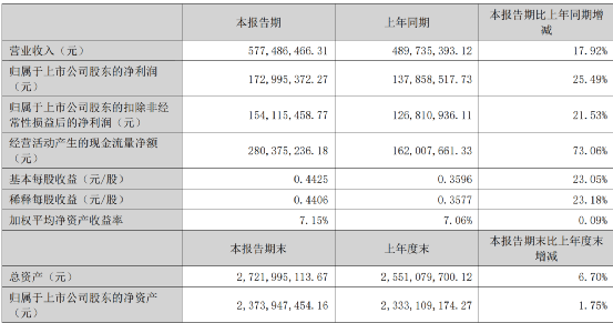 天孚通信于2022年8月25日披露中报,公司2022上半年实现营业总收入5.77亿元,同比增长17.9%;实现归母净利润1.73亿元,同比增长25.5%;每股收益为0.44元。