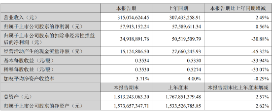 光库科技8月18日晚间发布半年度业绩报告称,2022年上半年营业收入约3.15亿元,同比增加2.49%;归属于上市公司股东的净利润约5791万元,同比增加0.56%;基本每股收益0.3534元,同比减少33.94%。
